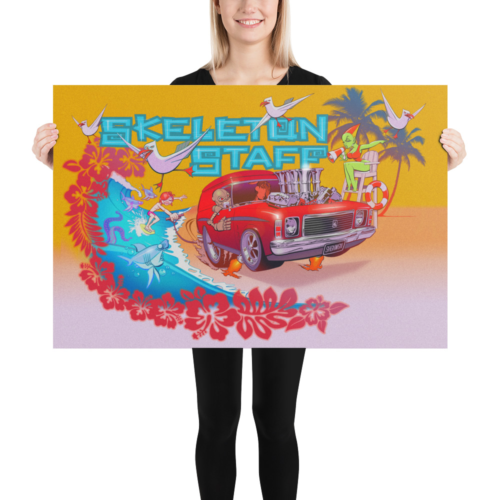 Surfin' with Skeleton Staff Poster